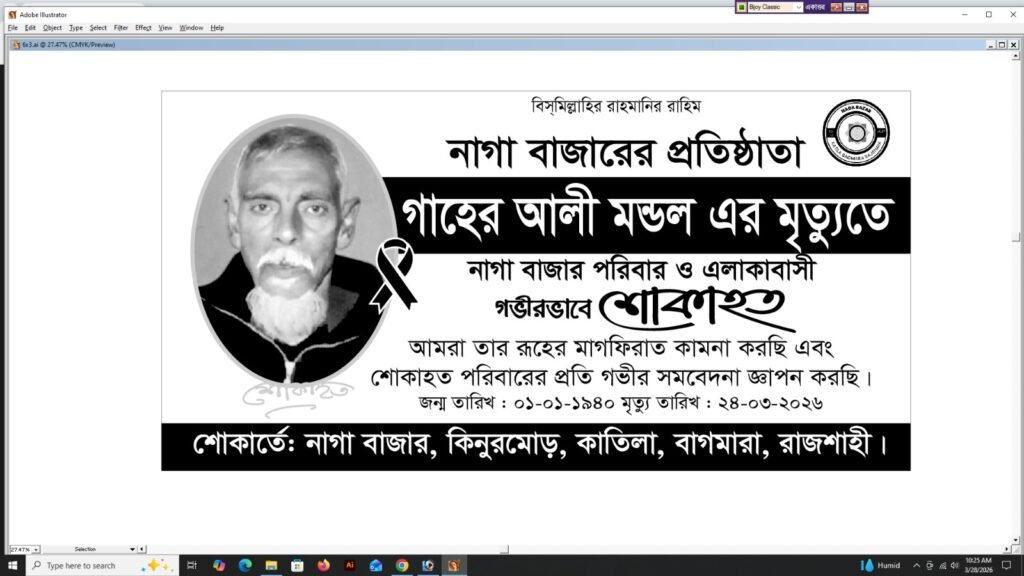 নাগা বাজার পরিবার ও এলাকাবাসীর পক্ষ থেকে শোকবার্তা: